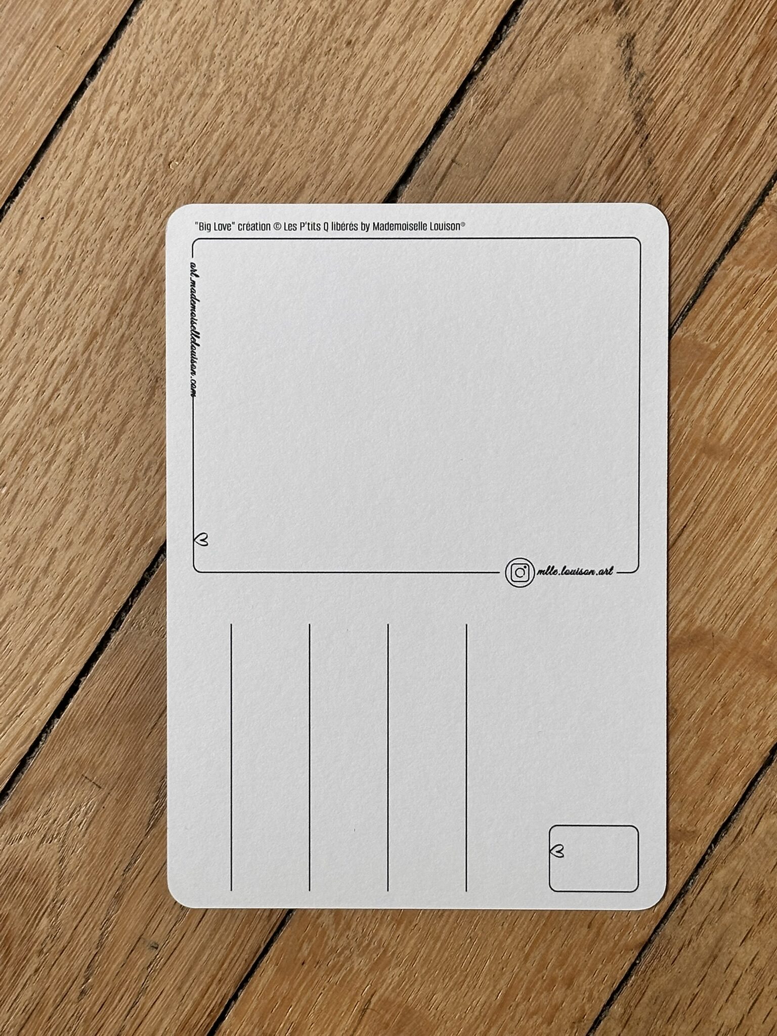 Caractéristiques Format A6 (105 x 148 mm) , impression recto/verso sur papier texturé naturel grammage 300g avec coins arrondis. Fournie avec une enveloppe crème. Envoi protégé dans une enveloppe cartonnée rigide.